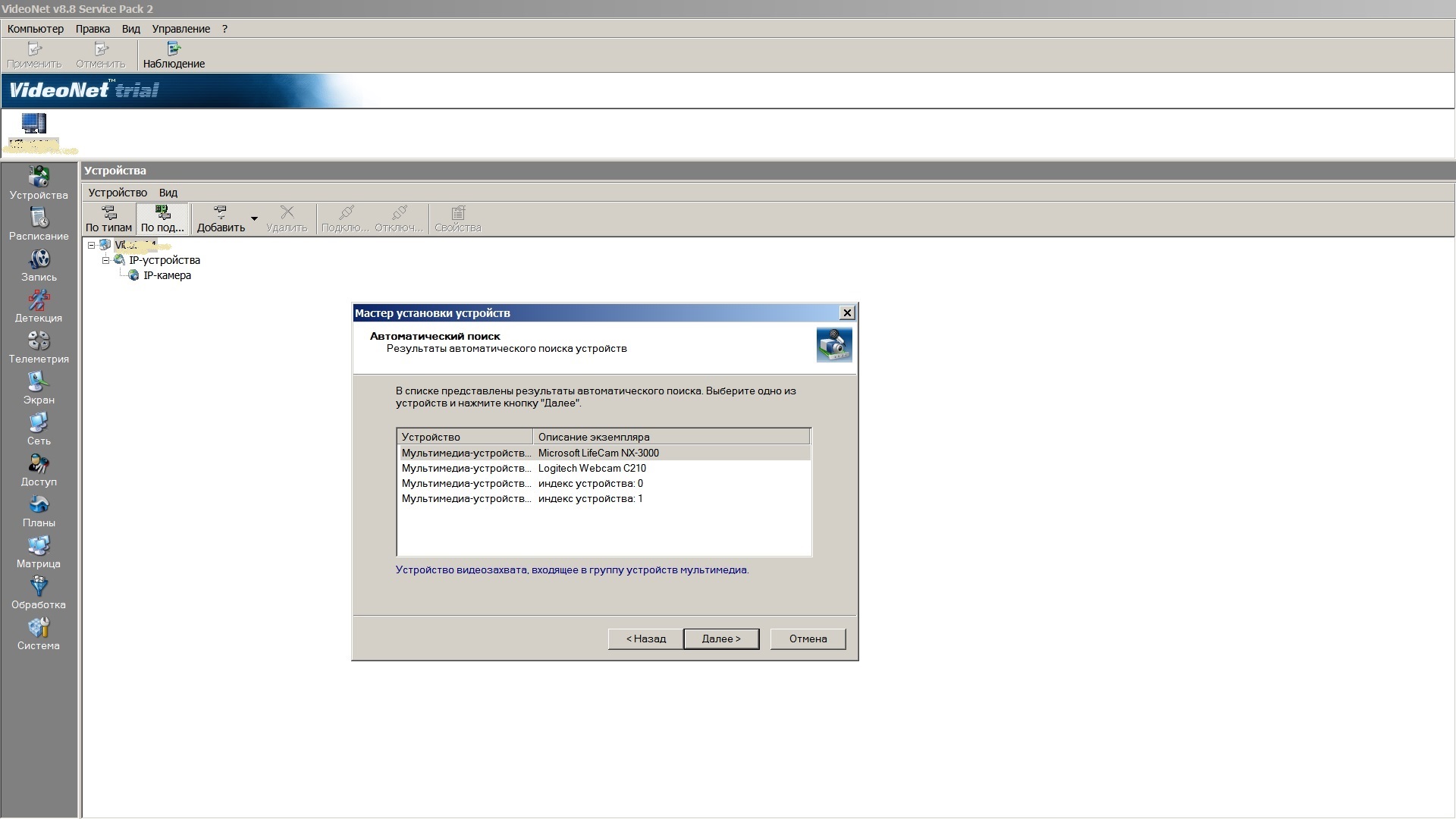 Но VideoNet , хоть он и обнаруживает автоматическим поиском эти камеры (скриншот) работает только одна из них, обычно первая подключаемая.
