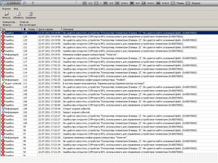 "элемент "Журнал событий VideoNet": Чтение и запись в базу данных невозможно. (0x10d9)"