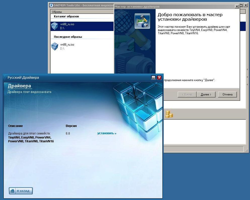 Драйвера автоматически устанавливаются при инсталляции системы VideoNet.