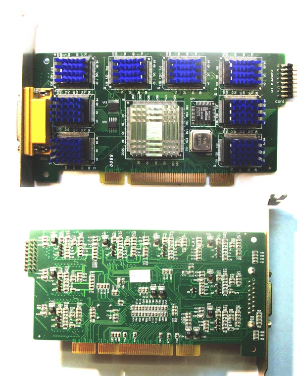 Плата приобреталась ЧОПом на объект до меня, я ее принял так сказать по описи, но точно знаю, что работала под VideoNet8.4, ключ фиолетовый, 40мм, на нем соответствующая надпись, чипы conexant fusion 878a, грелось прилично и я приклеил радиаторы, потом, скачок напряжения, апс не спас, материнке кирдык, да и с объекта ушли всвязи с его сдачей, пару лет без движения, теперь возникла необходимость, а какую плату указать при установке, не знаю.