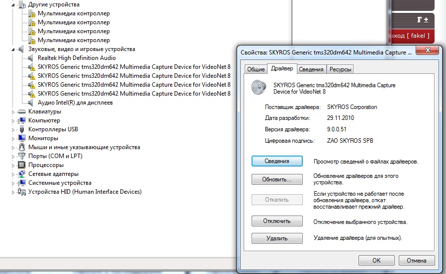 Попытался установить драйвер из 8.8 sp1, но устройство не запускается.